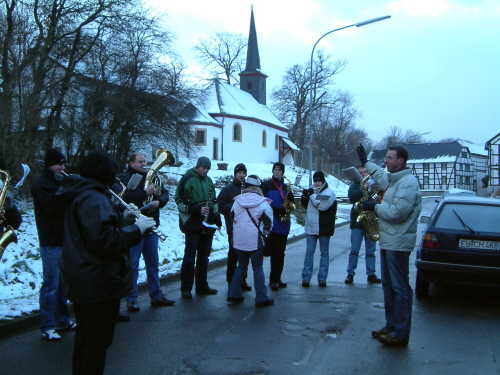 Musiker des Musikverein Bleibuir in Lückerath beim Vortrag von Advent - Weihnacht - Lieder - 2008 - vor dem Dorfhaus in Lückerath "Alte Turnhalle".